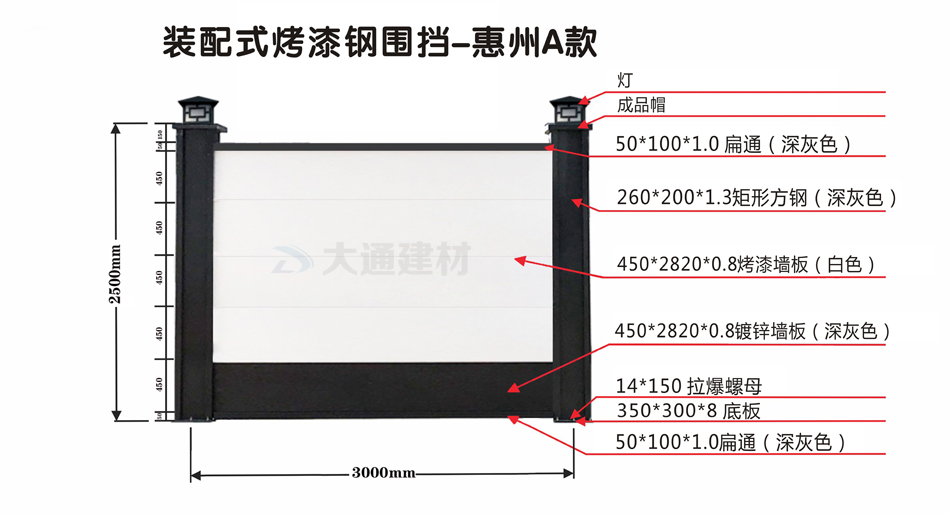 深圳市大通建材有限公司生產(chǎn)的惠州A款烤漆鋼圍擋,符合惠州市政標(biāo)準(zhǔn)、安全穩(wěn)固、美觀環(huán)保,適用于惠州各地的市政建設(shè)施工、房地產(chǎn)項(xiàng)目施工、隧道施工、地鐵項(xiàng)目施工、路橋維護(hù)施工、立面改造施工、廠房隔斷施工、管網(wǎng)改造等工程。